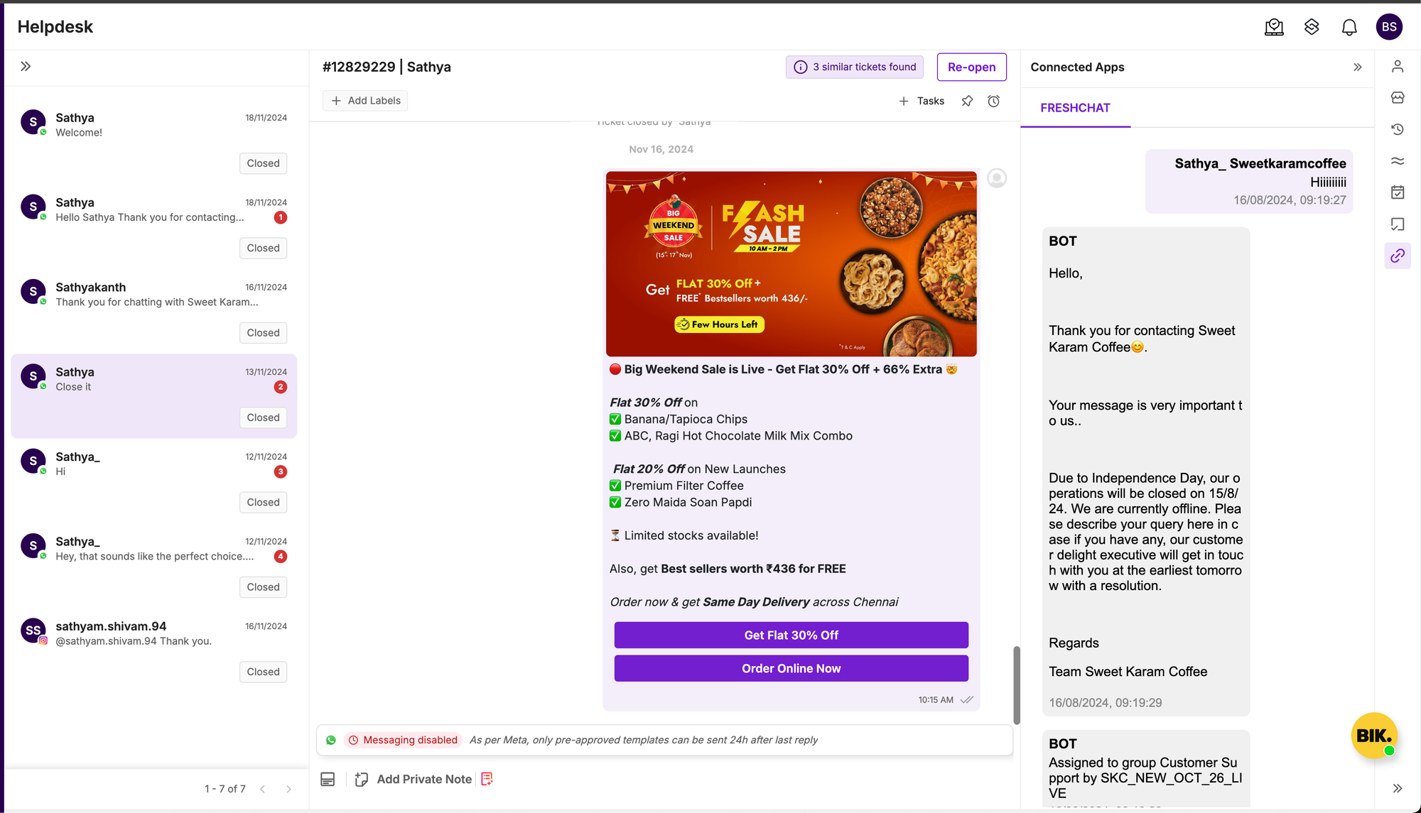 We’ve added the capability to show multiple attachments in Helpdesk and Marketing chats shared on Instagram DM!