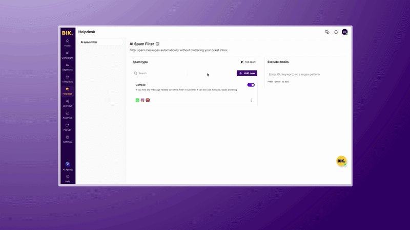The helpdesk now filters spam before it reaches your agents. Irrelevant messages like promotional noise, wrong numbers, greetings, abusive messages all of them are identified by AI and merchant-defined rules and is automatically closed, and moved to a dedicated Spam view. No ticket workflows triggered, no replies sent, no SLA clock running on junk. Spam stays visible and recoverable in case something gets wrongly flagged.