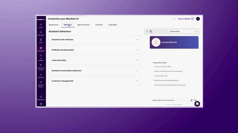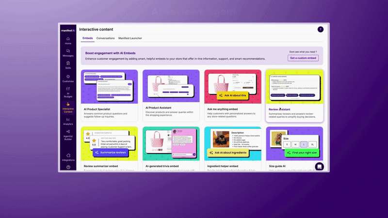 Manifest now accepts images in chat and inside AI Agent workflows. A shopper uploads a photo of a bag and asks "find me something like this" and the AI analyses it and suggests matching products. Merchants can toggle image input on or off, and inside Agent blocks, images can be processed and passed forward as URLs to the next step in the flow. Opens an entirely new class of shopping conversations.