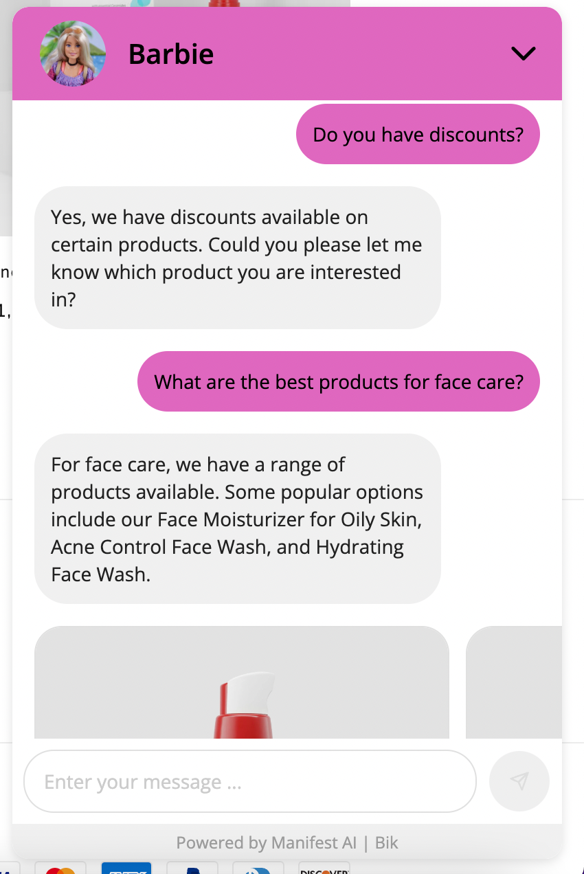 Deploy a Barbie 💖 on your Shopify store using Manifest AI