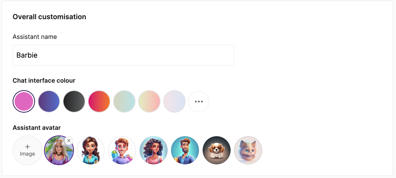 - On Manifest AI dashboard, set up your chat avatar to a Barbie image, I have generated few cute barbies using AI for you, feel free to use them.