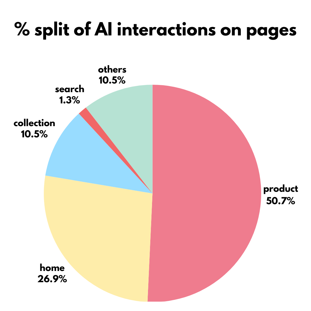 AI on product pages are in most demand! Consumers have lost the patient to look out for small details on your product page, rather are directly jumping to ask questions to the AI. Check out the split below & now image the sales lost by not having AI to answer the doubt your consumers have while on your website?