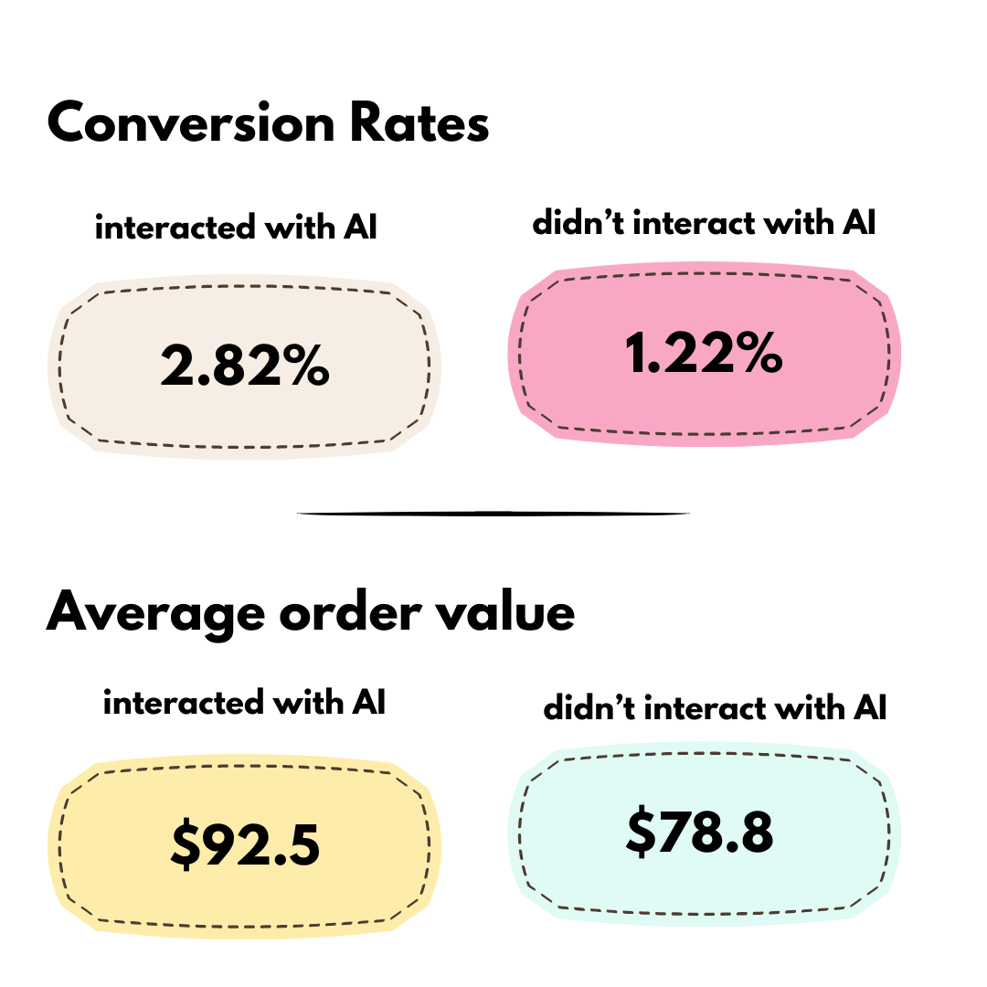 Conversion rates are almost 2x for consumers who are interacting with AI. With respect to Average Order Value, we are seeing 17% higher AoVs across stores. The number here clearly talk about the competitve advantage that a Brand has with AI adoption.