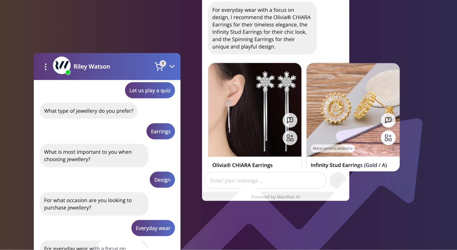 Manifest AI, with its conversational AI expertise, stepped in as the ideal partner. But simply deploying an AI wouldn't suffice. The solution needed to seamlessly integrate with Riley Watson's brand identity, offering personalized guidance and enhancing the overall shopping journey. Riley Watson partnered with Manifest AI to deploy a sophisticated AI assistant, seamlessly integrated across their website.