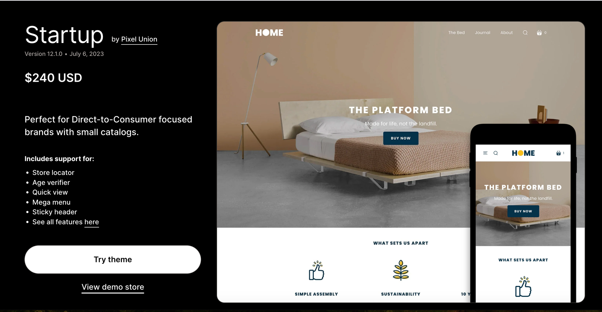 Startup is a premium Shopify theme specifically designed to cater to the needs of single product stores or small inventories. Shopify startup theme is known for its sleek, modern design and focus on showcasing a single item or a few products prominently.