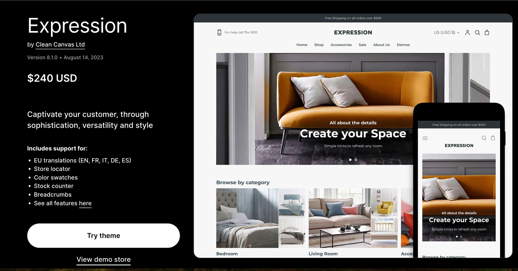 - Ideal Use Case: Expression is best suited for single product stores that rely heavily on visuals and storytelling to sell their product. It's particularly effective for art pieces, signature items, or any product where detailed imagery and narrative can significantly influence customer perception and value. Whether you're selling a designer piece, an innovative gadget, or a unique piece of decor, Expression can be tailored to make your product shine.