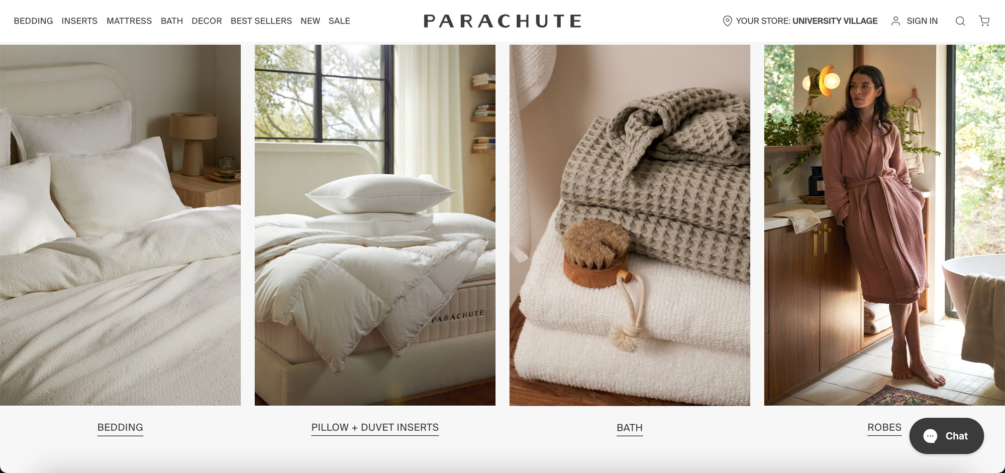 Culver City, California's Parachute (US, $15M-$25M revenue) is a masterclass in creating an inviting online experience. The moment you land on their homepage, you're enveloped in a sense of cozy luxury – thanks to a full-screen video and warm, inviting messaging.