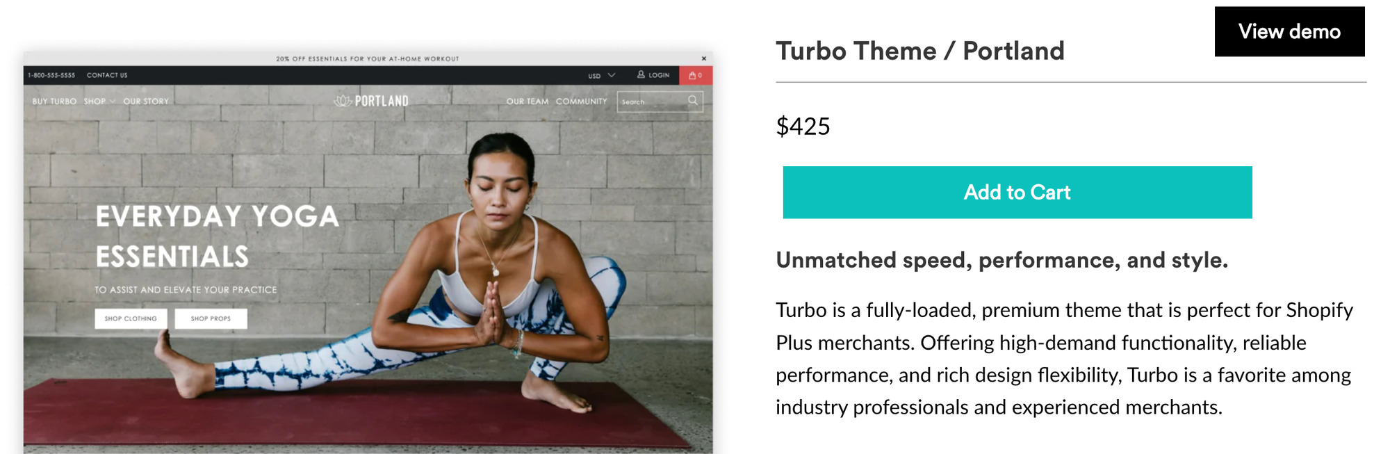 The Turbo Theme for Shopify is priced at $425. This is a one-time purchase cost, providing users with a powerful, feature-rich theme for their Shopify store. The price includes all the advanced features, layouts, and customization options that the Turbo portland Theme offers, along with future updates and customer support provided by the theme developers.